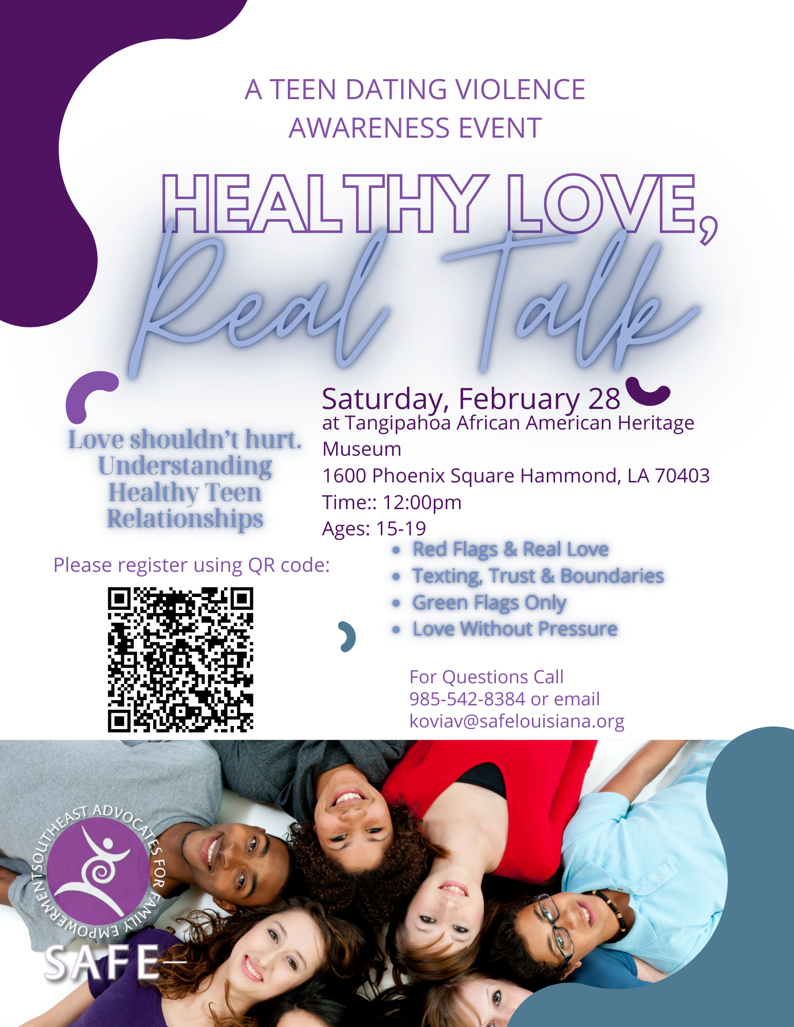 At SAFE, we believe education is prevention. When teens have the language to describe unhealthy behavior, they are better equipped to protect themselves and others.